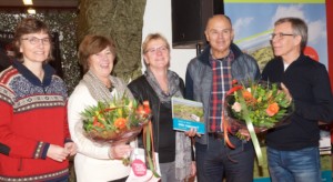 V.l.n.r. uitgever Fiet van Beek, Ineke Krook, auteur Tineke de Ruijter, Ab Krook en auteur Arie de Ruijter. Arie houdt een blog bij op www.dusuwilteencamper.nl.